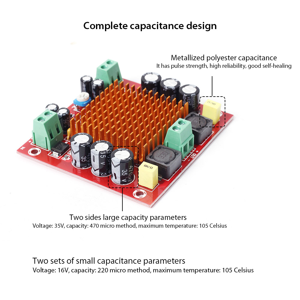 • Suitable for home cinemas: The TPA3116D2 has a switching frequency of up to 1.2 MHz and a power efficiency of over 90%, ensuring minimal distortion during normal use. XH-M544 provides an excellent audio experience with its impressive sound quality, making it perfect for home theater enthusiasts